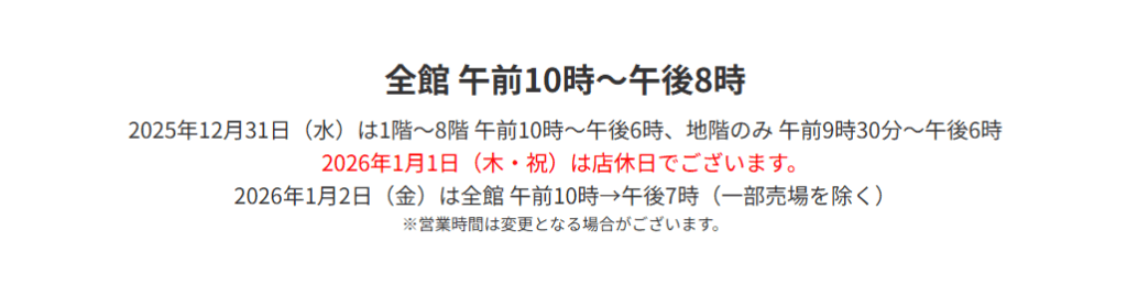 ※最終日の大晦日は変更の可能性がありますのでご確認ください